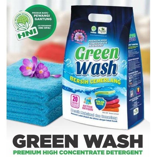 Green Wash Detergent- Isi : 500gr terdiri dari 20 sachet @ 25gr- Aman untuk pakaian ber