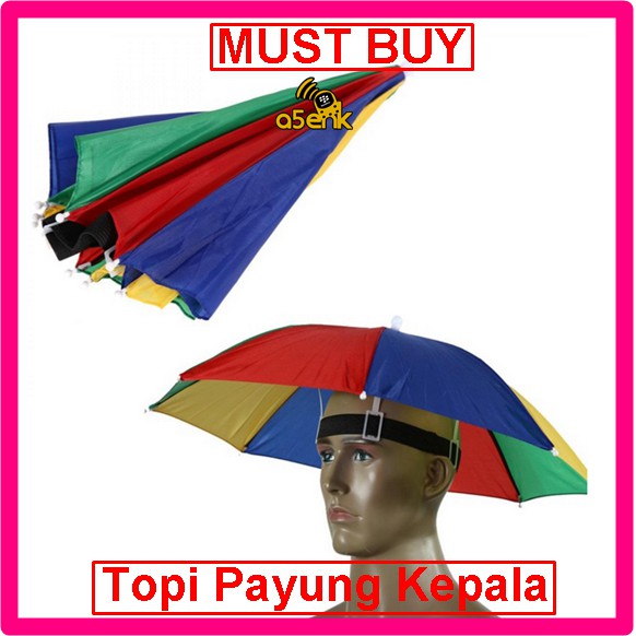 Topi Payung Kepala Headband Umbrella(NB : Silahkan Tambahkan BELI kardus tanbahan packing guna keamanan saat pengiriman. untuk barang anda sendiri)Topi Payung Kepala Headband Umbrella adalah Topi Payung ini merupakan terobosan baru yang dapat Anda gunakan untuk menghindari terik matahari ataupun hujan, payung teduh ini sangat ringan dan tidak membebani kepala Anda, membuat Anda dapat bergerak dengan bebas dan terhindar dari rintik hujan maupun sinar matahari secara langsungFeaturesCreative DesignDengan topi payung kepala Anda dapat dengan mudah melakukan aktifitas diluar ruangan seperti berkemah, memancing, golf, hiking dan kegiatan outdoor lainnya tanpa harus membebani tangan Anda, membuat tangan Anda bebas dan dapat melakukan pekerjaan lain, sangat cocok digunakan untuk bertani atau bercocok tanam.Topi payung dapat dilipat saat tidak dipakai. Dilengkapi dengan karet pada bagian kepala sehingga payung tidak mudah lepas. Cocok untuk kegiatan outdoor.dapat digunakan semua kalangan baik anak-anak, dewasa bahkan orangtua sekalipun agar tidak kena panas sinar matahari maupun air saat hujan. dilengkapi karet pengikat kepala yang lentur dan lunak serta dapat dicuci jika kotorNote: TDK ADA RETUR/KOMPLAINBARANG TDK BERGARANSI DIBACA