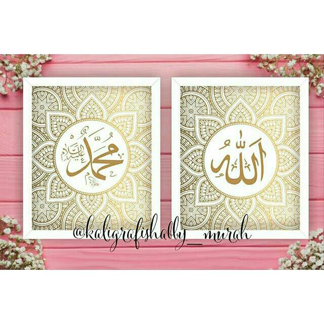 Distributor Perlengkapan di Kabupaten Wonogiri Set Kaligrafi Allah Muhammad Ukuran 10r Ayat Kursi 12r Lace Gold Design dari Tidak Ada Merek Kab. Sidoarjo