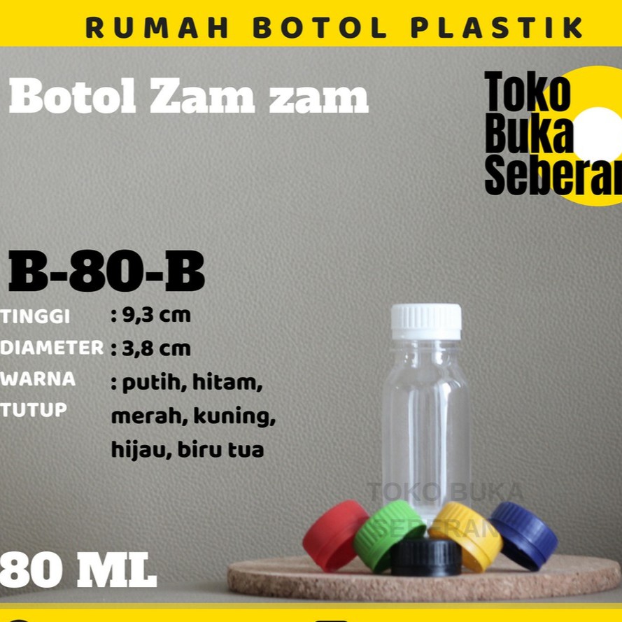 HARAP BACA DESKRIPSI!**ITEM INI HANYA UNTUK VIA GOJEK***PEMBELIAN DILUAR GOJEK SILAHKAN HUBUNGI ADMIN VIA WA**BOTOL 80 ml (B-80-B)Harga Rp 800/pcs (MIN.20)*1 BAL/ 1 KANTONG ISI 100botolDisarankan melakukan pembelian PER BAL/ KANTONG karena akan mempermudah pengiriman. (akan lebih diutamakan karena tidak perlu menyusun lagi)*Botol plastik yang cocok untuk susu kedelai, jus, smoothies, susu, teh, yogurt, dllSudah termasuk tutup yang tinggal diputar langsung tersegel.Botol masih BARU & STERIL (Tidak perlu dicuci)*Mohon cantumkan warna tutup HITAM/ PUTIH/ ORANGE/ UNGU/ MERAH di kolom catatan.Apabila tidak di cantumkan pilihan warna, maka akan kami kirim random sesuai ketersediaan stock kami.*Mohon tambahkan BUBBLE WRAP untuk tambahan packing yang ingin lebih aman. (silahkan klik LINK dibawah)https://shopee.co.id/product/31171577/581619785/*PENGIRIMAN VIA WA- Pengiriman Cepat JABODETABEK (GOSEND, GRAB, J&T, JNE YES)- Pengiriman Cepat Pulau JAWA dan LUAR JAWA (JNE)- Pengiriman Murah (WAHANA, J&T dan JNE