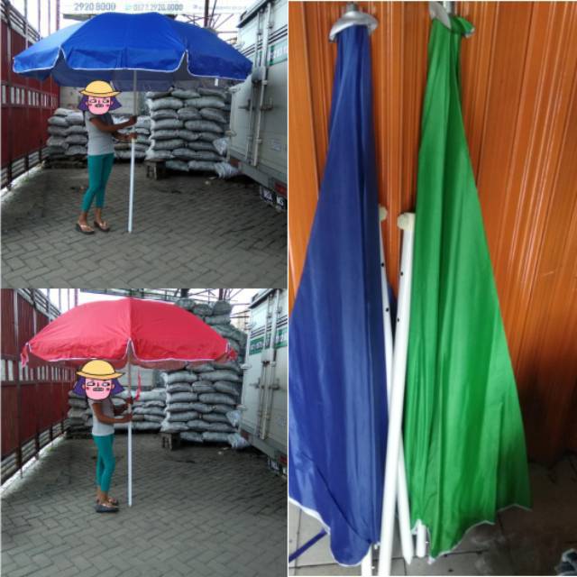 Dijual Payung tenda untuk jualan, dagang, PKL, Stand, atau taman, cafe dll.Spesifikasi:-ukuran besar 26Ocm-special POLOS lapis silver lebih -adem dari bahan biasanya-dijamin lebih awet- 100% Anti air dan panas matahari. - Rangka KUAT dan KOKOH (lebih kokoh dari yg 160cm, 170cm, 200cm, dan 220cm)- Ketinggian payung bisa disesuaikan dengan 2 pilihan ketinggian, yaitu 2OOcm- 230CM dari atas permukaan.- Sudah termasuk tiang tambahan/ extension.- Pemasangan payung & tiangnya sistem sambung (2 bagian).-harga tdk trmasuk kaki\tatakan-kami jg mnjual tripod besi mode lipat - kaki beton- dan jg meja bulat multiplek putih-cek ja di etalase toko kami-lebih murah tuk pembelian 1 set-payung+meja+kakiCATATAN..barang sudah dipastikan di cek sebelum dikirim dan sudah pasti tidak ada kerusakan/cacatpakingan sudah free bubble wrap...dilapak lain blom tentukerusakan karena kelalain kurir/pemakainya bukan tanggung jawab kami.. terima