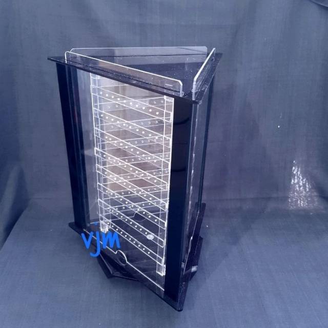 Terbuat dari Bahan Acrylic 3mm warna & 2mm bening dngn ukuran Tinggi 25cm x Lebar sisi 1, 2 & sisi 3, 22cm bisa di putar manual & sudah di lengkapi dngn kaca supaya barang aksesoris tidak