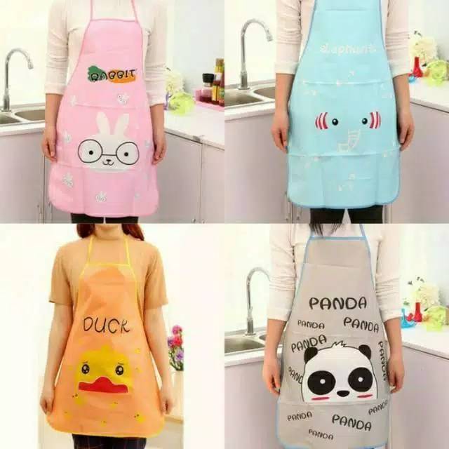 Apron ini praktis dan ekonomis dengan motif kartun lucu Dengan warna warna menarik.Menghindari percikan kotoran dan minyak pada pakaian anda.Ukuran panjang 70cm lebar 50cmBahan:PVC kain waterproof trans