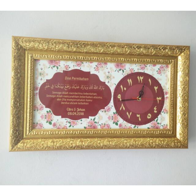 Name: Hiasan Jam Dinding Untuk Kado Pernikahan Warna Red Gold Uk 20x40