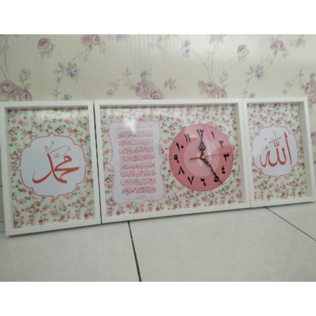 Hiasan jam dinding kaligrafi set ayat kursi uk 30x40 dan allah muhammad uk 20x30 shabby vintage pink mesin jam standard q