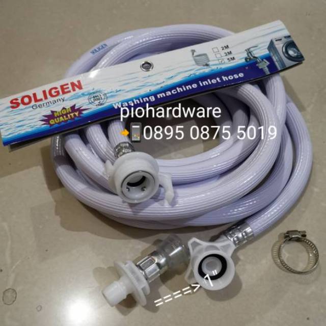 SELANG MESIN CUCI INLET MERK SOLIGEN,PANJANG SELANG 5M,BAHAN PLASTIK & Karet, Diameter Selang 2 Cm,ukuran drat 1" SELANG DARI KRAN KE MESIN