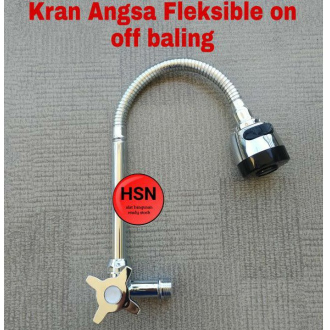 Kran cuci piring model leher angsa, kran flexible, stainless, uk drat 1/2Ada on-offPutaran kran dikirim random sesuai stok yg ada (baling atau engkol) Good Quality Bagus.Awet dan tahan