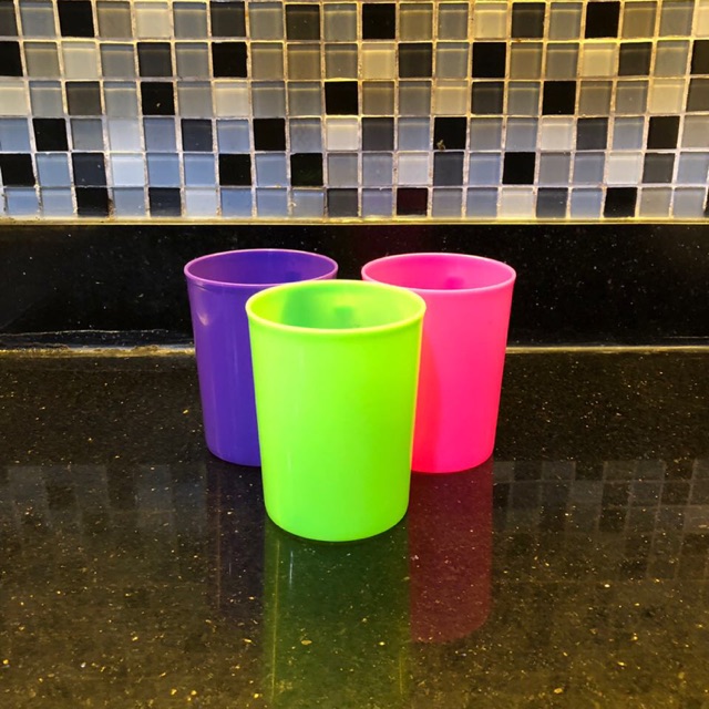 Gelas plastik polos dengan 3 warna ini sangat simple dan stylish juga. Karena dengan warna seperti ini sangat lah menarik orang-orang untuk melihatnya. Bisa buat minum sehari-hari atau pesta dllDiameter atas : 8cmDiamete bwh : 7 cm Tinggi : 10.5 cmDiameter atas + pegangan : 10.5cmVol 350 *FEEL FREE to ask