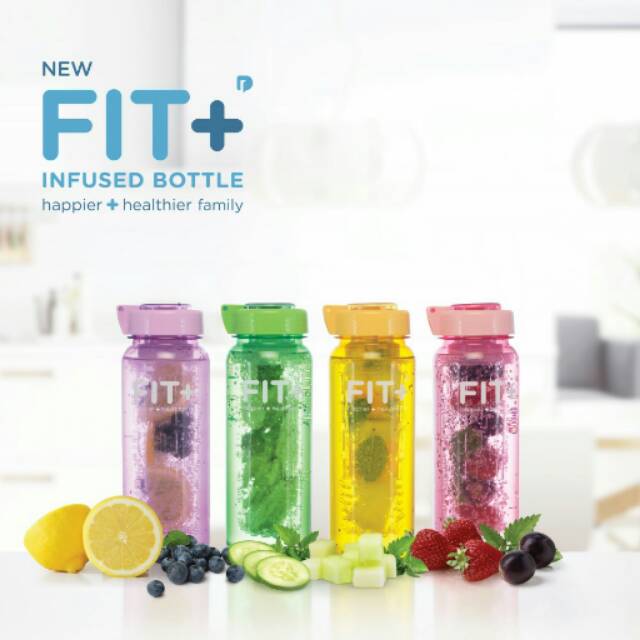 Fit+ Infused Bottle, hadir kembali dengan kemasan yang lebih FRESH!!Hadir dengan warna - warna cerah favorit keluarga.Setiap botolnya dilengkapi dengan infuser, yang dapat digunakan untuk membuat infused water dengan buah-buah kesukaan Anda. Cocok untuk digunakan sehari-hari, lengkap untuk sekeluarga.1 set terdiri dari 4 botol dengan 4 warna berbeda: Ungu, Pink, Kuning, dan Hijau.Dengan spesifikasi:- Bahan PC7- Unbreakable- Food Grade- Daya tampng 650 mlJadi lebih sehat dan bahagia dengan
