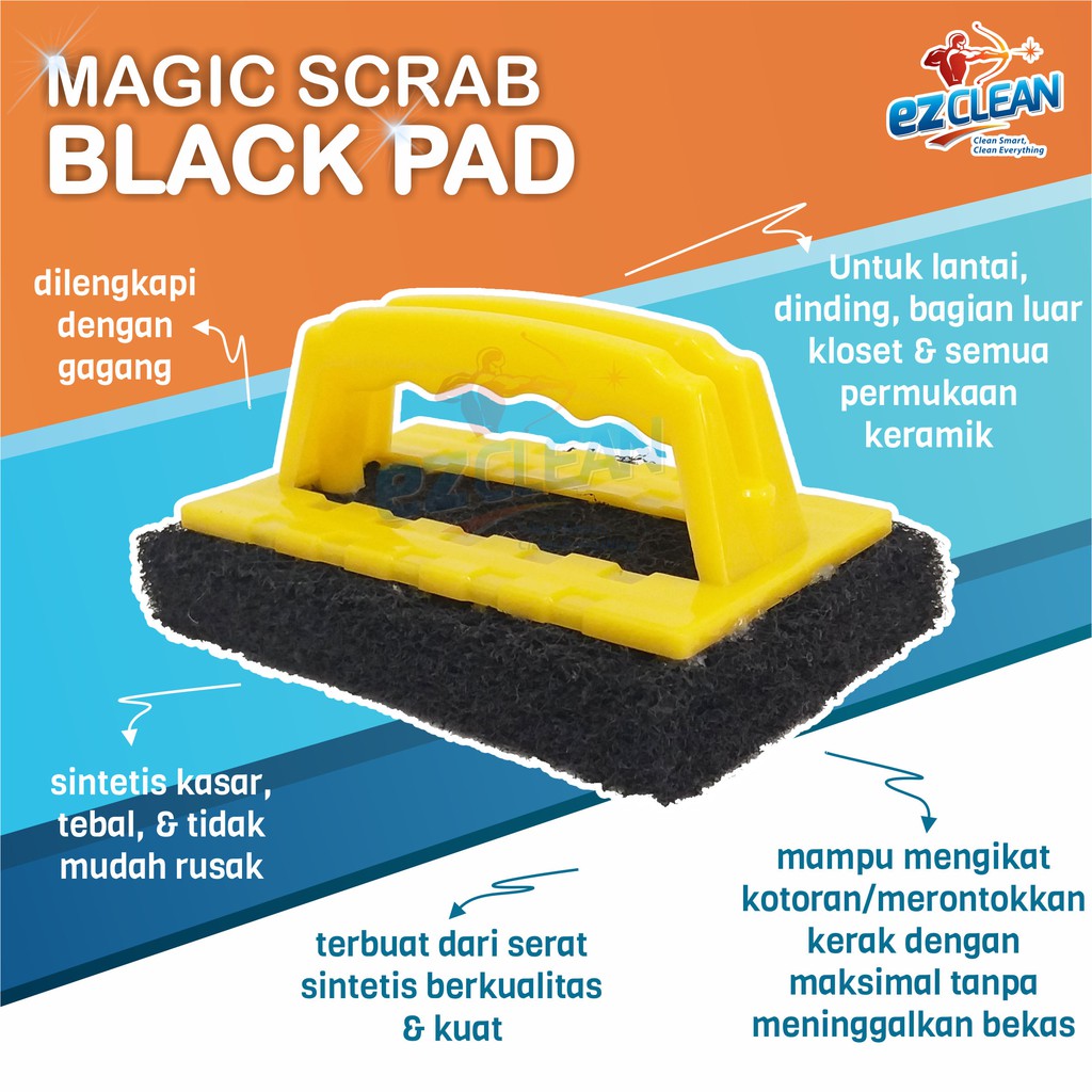 Selain produk pembersih yang ampuh, kami juga menghadirkan Sikat/Pad, untuk memudahkan anda saat melakukan kegiatan bersih-bersih. Jika berbicara tentang sikat, ada banyak sekali jenis sikat yang tersedia di pasaran. Berbagai bentuk, ukuran, material dan tekstur sikat didesain untuk membantu Anda membersihkan kamar mandi. Dengan sikat yang sesuai dengan fungsi, maka proses pembersihan akan lebih cepat dan mudah.Namun tak jarang banyaknya pilihan jenis dan model sikat justru membingungkan kita dalam menentukan pilihan. EZCLEAN telah menghadirkan sikat yang sangat tepat digunakan diberbagai macam perabot, baik dari segi kualitas, model, bahan, kenyamanan, kekuatan, daya tahan, dan harga, sehingga anda tidak perlu bingung lagi memilih sikat.Sikat/Pad kami terbuat dari nilon/sintetis khusus yang dirancang sesuai dengan kebutuhan anda, salah satunya yaitu EZCLEAN MAGIC SCRAB BLACK PAD. Material pad/sikat ini terbuat dari serat sintetis berkualitas, tebal, & kuat yang mampu mengikat kotoran atau merontokkan kerak dengan maksimal tanpa meninggalkan bekas. Bagian gagangnya dibuat ergonomis sehingga nyaman digenggam saat digunakan. Selain itu, sikat ini juga awet dan tidak mudah rusak.Sikat ini sangat efektif digunakan untuk membersihkan lantai, dinding, dan perabot dari keramik/porselen lainnya yang permukaannya datar, bagian luar closet & wastafel keramik, dsb.Peringatan ! 1. Untuk membersihkan lantai dan dinding keramik halus (tanpa tekstur), wastafel dan kloset hanya gunakan EZ Clean Black Pad.2. Untuk membersihkan lantai yang bertekstur, gunakan EZ Clean Black Pad yang digabungkan dengan steelwool atau sabut kawat/gerenjeng kawat (Lihat pada gambar)EZClean Black Pad sangat cocok digunakan dengan EZClean Porcelain & Ceramics Cleaner.Harga tertera adalah harga per pcs.EZCLEAN, Clean Smart, Clean Everything !#ezclean #ezcleanindonesia #ezclean #sikatpembersih #sikat #sikatkeramik #pad #blackpad #sikatlantai #sikatampuh #sikatporcelain #sikatkerak #sikatkuat #sikatmurah #sikatmalang #sikatelastis #sikatwc #sikattoilet #sikatwastafel #sikatsintetis #sikatporselen #sikatkloset #sikattebal #sikatawet #sikatberkualitas #ezcleanmagigscrab #magicscrab #scouri